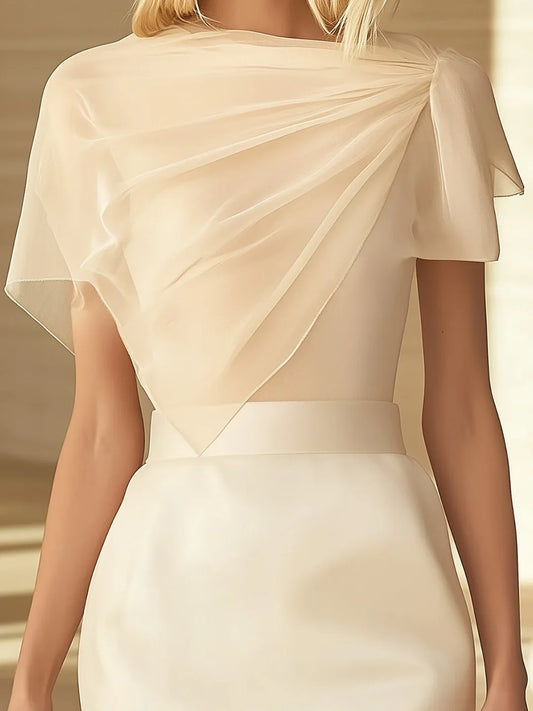 Drapeli Detaylı Modern Krem Şifon Üst